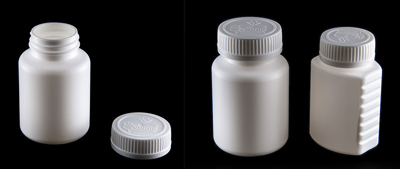 Envases con seguridad anti-niños, fabricados en HDPE con diferentes diámetros y capacidades. Disponemos también de tapas con liner para sellado por inducción y también con liner de aluminio de fácil abertura.